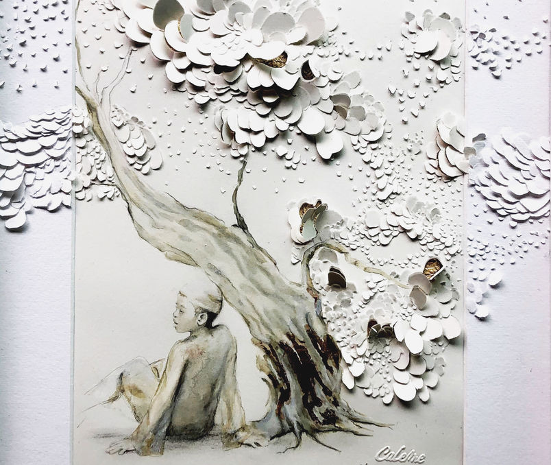 Papier coton et passe-partout ciselés dans la masse -technique graphique mixte -